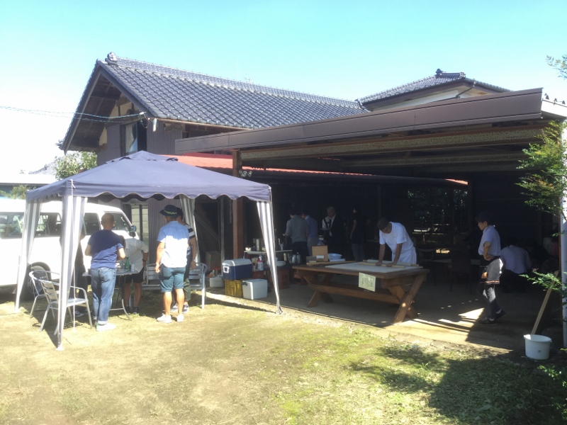午後の部では、本格的なBBQ(プロも顔負けの味)と、新そばをそば打ち名人4段の