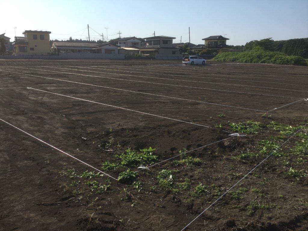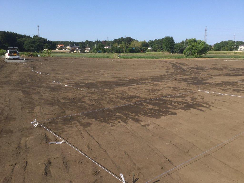 2018.05.18 / 最終更新日 : 2022.09.04 3110hs ブログ 茨城県内の2基太陽光発電所① これから施工する茨城県内の太陽光発電所にて 本日は「位置出し」をしています。 この位置が正確でないと架台を設置する際に 歪みが生じるなど、後々の工程に影響します。 とても大事な作業となります。