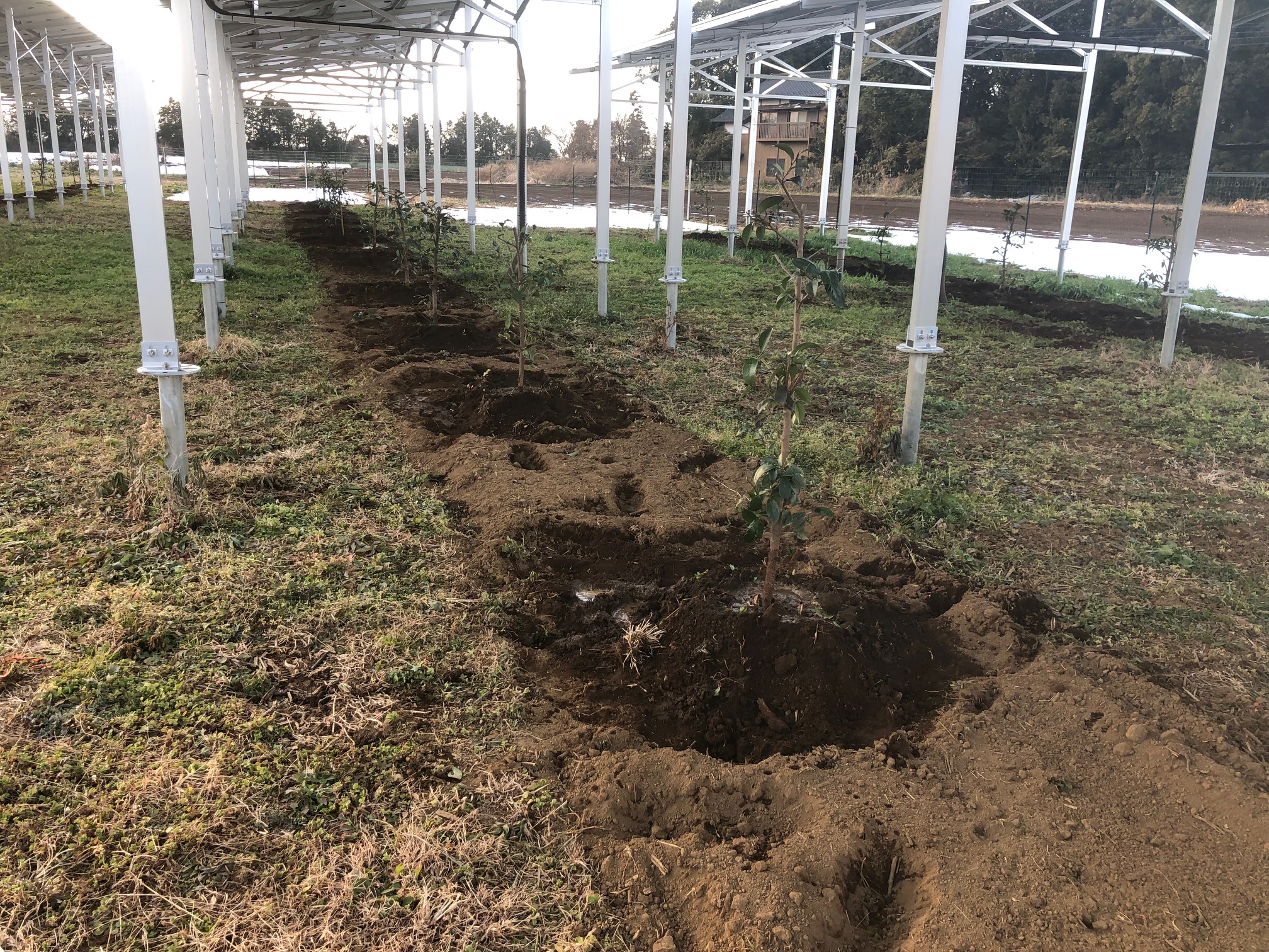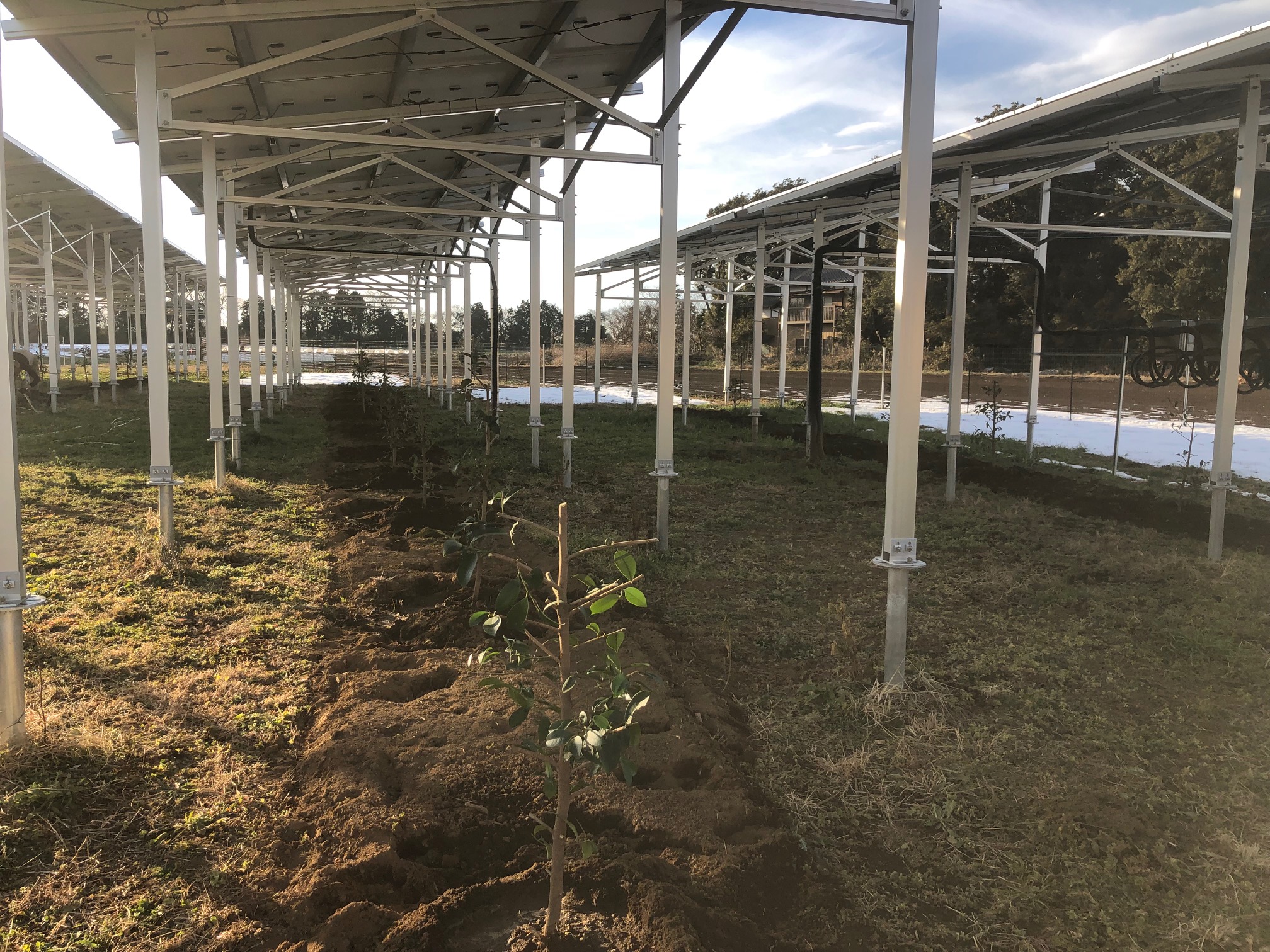 つくば市大舟戸にある、お客様の営農型太陽光発電所下にて